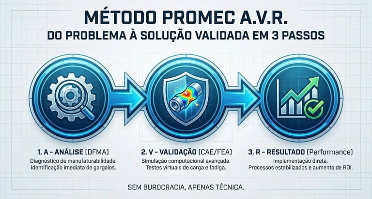 Consultoria técnica e desenvolvimento de produtos. Unimos a precisão da engenharia com a visão estratégica de negócios para viabilizar sua indústria.